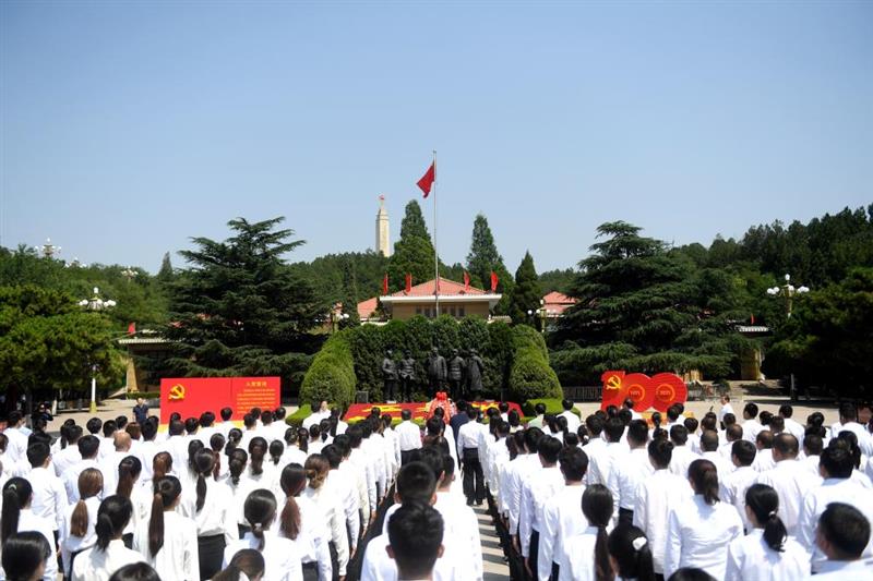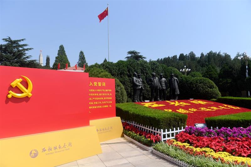 在河北,新党员代表在西柏坡纪念馆广场进行入党宣誓活动。新华社记者王晓摄