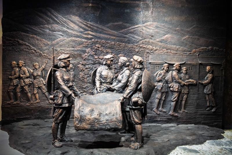 淮海战役中,就是用这一辆辆小推车以及船只、牲畜、挑子,数百万支前群众为解放军运送粮食、弹药,救护伤员……每一个解放军士兵背后,就有9个支援他的乡亲。