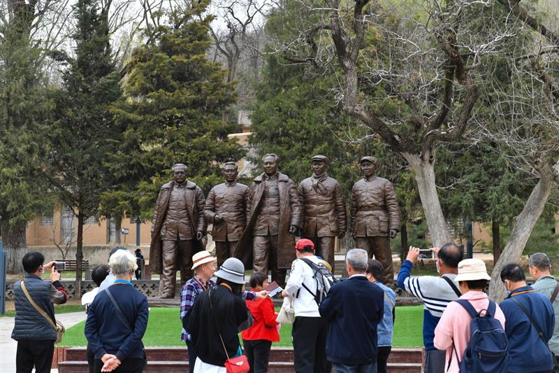 2021年3月30日,参观者在陕西延安枣园革命旧址参观。新华社记者 张博文 摄