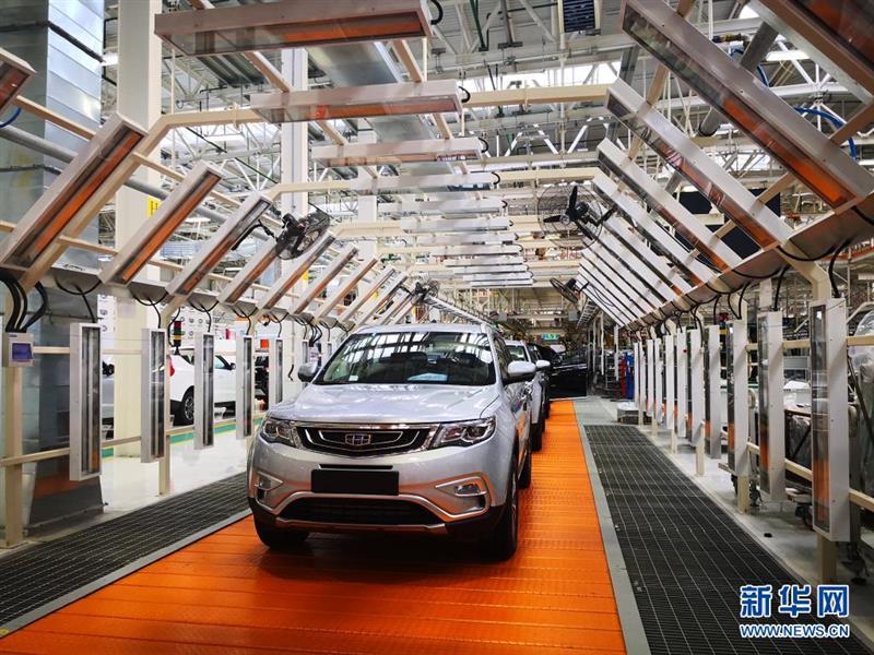 这是2018年12月1日在白俄罗斯首都明斯克东北方向50公里处的白俄罗斯吉利全散件汽车制造厂总装车间拍摄的准备下线的汽车。新华社记者 张若玄 摄