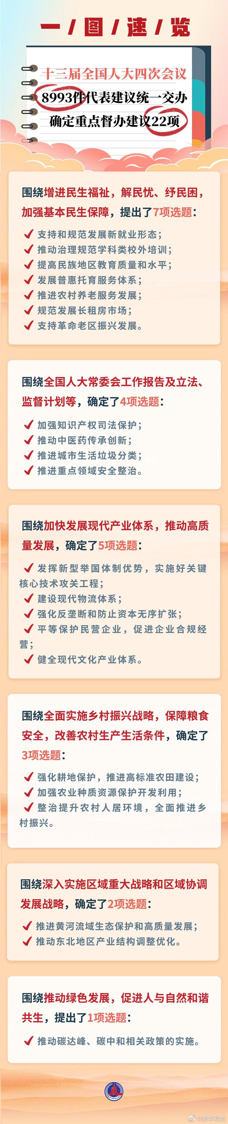 周知!全国人大常委会办公厅确定22项重点督办代表建议