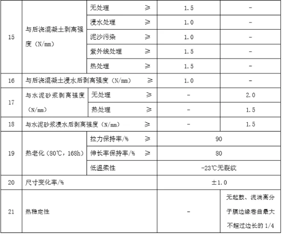 6)预铺反粘。YC类产品在地下室底板施工时,可与后浇混凝土反向粘结,实现“皮肤式”防水效果,且粘结牢固,长期浸泡下仍然密不可分。