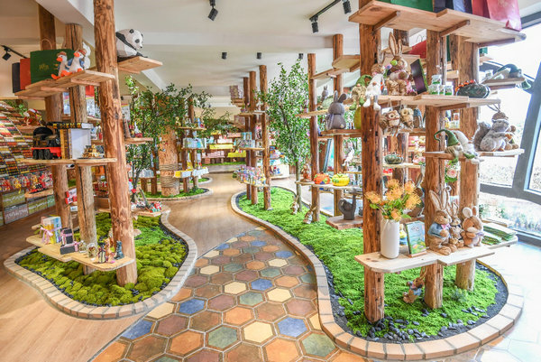 在三大主题馆周围,还分布着糖果公爵、春之列车邮局、珠玑宝藏、万花迷踪、精灵总动员等特色小店。这些小店栖居于水果造型的怪屋中,不但名字特别,里面收藏的各种文创纪念品和手工艺作品也十分精美。就拿春之列车邮局来说,里面的生日卡片、文具用品皆有凤龙湾小火车的踪影,如果你对凤龙湾的风景流连忘返,那么在逛这些小店的时候,无处不在的彩蛋,会让你的旅游消费充满惊喜。