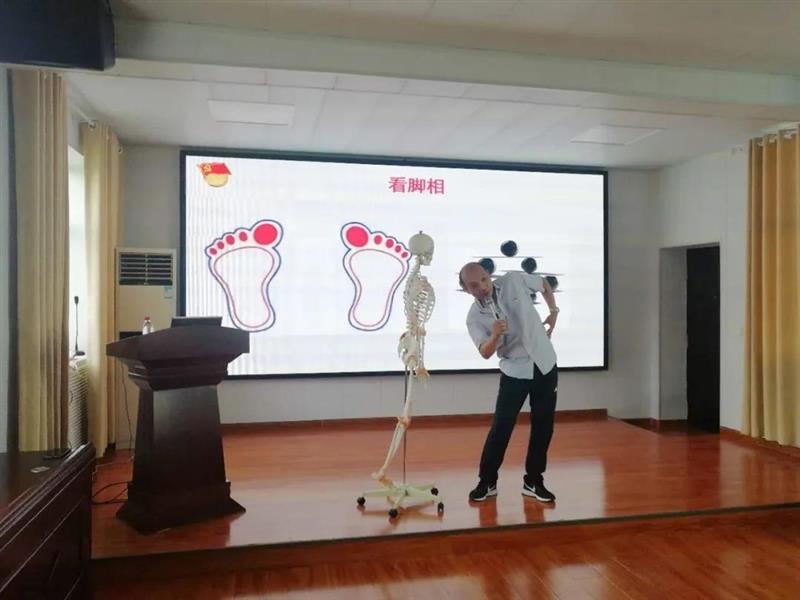 讲座中,李永军通过模型演示、图片案例、精短抖音视频等多种形式,用妙语横生的语言,对脊柱的概念、脊柱的相关疾病、青少年特发性脊柱病、颈椎病、腰椎病、坐骨神经病等进行了详细的讲解,以互动的形式向大家介绍了预防相关疾病的小窍门,并现场教学了日常保健动作,进一步倡导健康的生活方式。