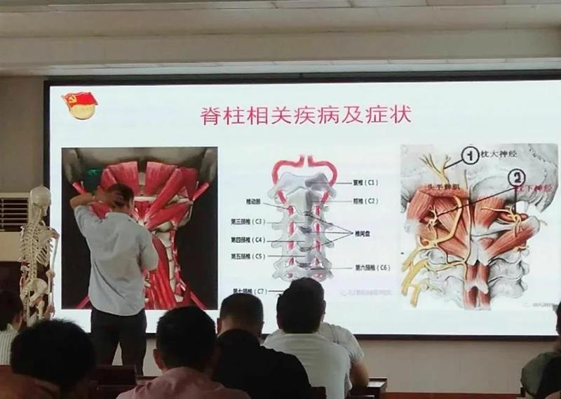 为进一步提升机关干部的健康理念,增强机关干部的自我保健能力,5月29日,玉川片区举办以“呵护脊柱”为主题的健康知识讲座,邀请济源第二人民医院主任医师李永军讲解相关知识。