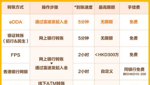 通过eDDA快捷入金功能,可直接通过富途发起入金,到账速度提速至5分钟,无转账额度限制,并且不收取手续费。而截止目前,富途证券香港eDDA快捷入金功能已支持包括汇丰、恒生银行、中国银行(香港)在内的13家香港银行卡。