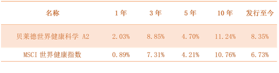 贝莱德世界健康科学A2基金成立至今收益达到358.4%(截至2020年3月31日),大幅跑赢基准指数MSCI世界健康指数的244.6%(截至2020年3月31日)。十年年化收益率达到11.24%,均跑赢基准,即使在资产大幅下滑的今年,该基金依然有着韧性。