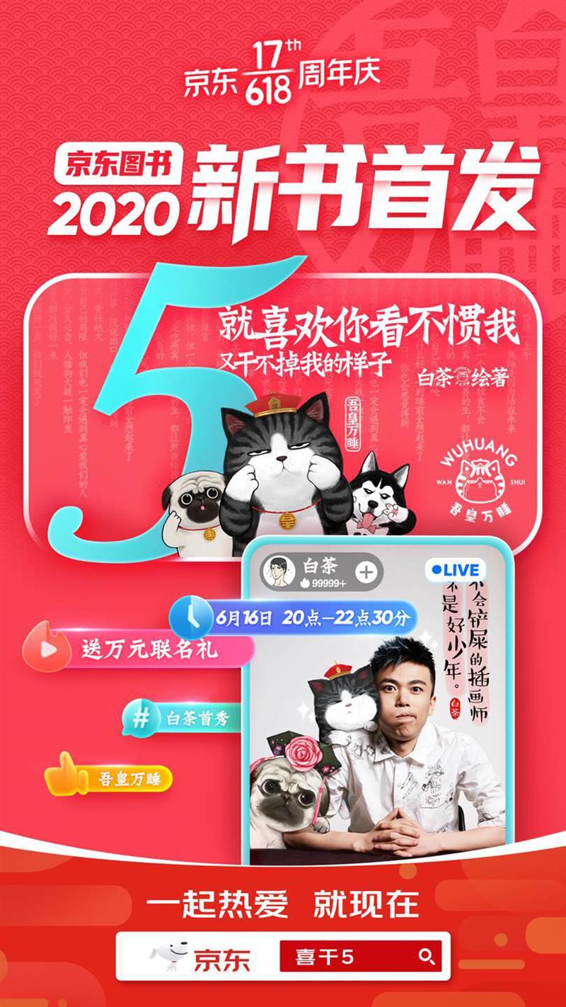 6月16日,《就喜欢你看不惯我又干不掉我的样子5》将在京东平台独家举行盛大的新书发布活动,用户可以在京东下单购买新书;当晚8点,还可在京东直播平台观看漫画作者、超人气漫画家白茶的直播首秀,白茶将携青年作家笛安与读者互动交流,用户在直播期间下单买书,收到的是白茶手签签名本。